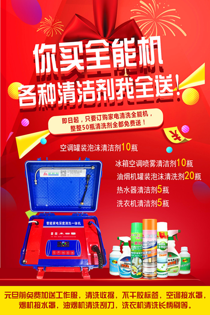 即日起,凡訂購家電清洗*能機(jī)+管道清洗*能機(jī)的客戶